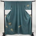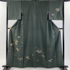付下げ 身丈160cm 裄丈66cm M 袷 草花 刺繍 金糸 深緑 正絹 秀品 一つ紋 中古