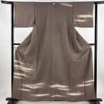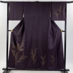 付下げ 身丈156.5cm 裄丈62.5cm S 袷 萩 刺繍 金彩 茶紫 正絹 秀品 中古