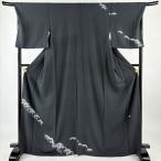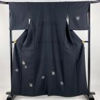 付下げ 身丈161.5cm 裄丈66.5cm M 袷 やまと 草花 地紋 箔 刺繍 墨色 正絹 秀品 中古