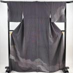 付下げ 身丈166.5cm 裄丈67cm M 袷 縦縞 道長取り 黒灰 正絹 秀品 中古