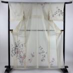 付下げ 身丈162cm 裄丈65cm M 薄物 夏紬地 桔梗 萩 クリーム 正絹 美品 秀品 中古