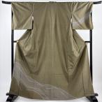 付下げ 身丈164cm 裄丈69cm L 袷 紬地 幾何学 茶緑色 正絹 美品 秀品 中古