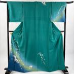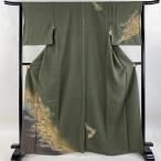 付下げ 身丈167.5cm 裄丈69cm L 袷 落款あり 笹 深緑 正絹 秀品 中古