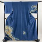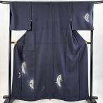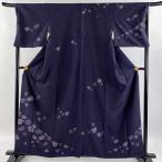 付下げ 身丈156cm 裄丈65cm M 袷 草花 道長取り ぼかし 濃紺 正絹 秀品 中古