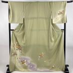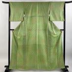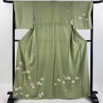 付下げ 身丈165cm 裄丈66cm M 袷 花丸文 刺繍 緑 正絹 秀品 中古
