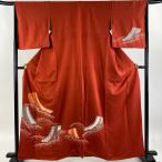 付下げ 身丈159.5cm 裄丈66cm M 袷 七宝 草花 金彩 絞り 朱色 正絹 秀品 中古