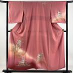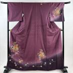 付下げ 身丈166cm 裄丈67cm M 袷 花車 芝 金銀彩 ぼかし 赤紫 正絹 秀品 中古
