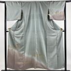 付下げ 身丈163.5cm 裄丈67cm M 袷 葉と実 ぼかし 薄緑 正絹 優品 中古