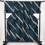 付下げ 身丈156.5cm 裄丈70cm L 袷 斜縞 幾何学模様 縮緬 青緑 正絹 秀品 中古