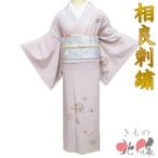付下げ 訪問着 着物 未使用 正絹 単衣 紋付 相良刺繍 蘇州刺繍 花の図 灰桜色 多色 身丈164.5cm 裄65.5cm L きもの北條 A1337-14