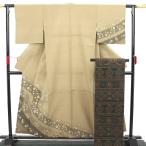 付下げ 着物 金彩加工 本加工 手染め 地紋 黄ベージュ 花柄 正絹 リサイクル 中古 仕立て上がり 身丈170 裄68 TLサイズ みやがわ sb12194