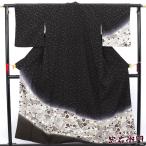 中古 付下げ 袷 正絹 黒 桜 辻が花 身丈159cm 裄丈64cm フォーマル Mサイズ相当 リサイクル着物