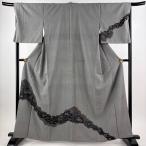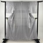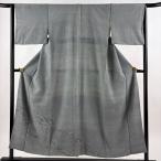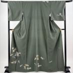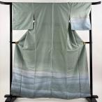 付下げ 身丈154.5cm 裄丈63cm S 袷 お召地 雪輪 草花 ぼかし 染め分け 灰緑 正絹 逸品 中古