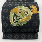 袋帯 逸品 滝泰 落款あり 葉柄 銀糸 絞り 黒 お太鼓柄 正絹 中古