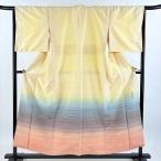 付下げ 身丈154cm 裄丈66cm M 袷 諏訪好風 落款あり 縞 金通し 薄黄 正絹 逸品 中古