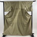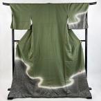 付下げ 身丈166cm 裄丈67cm M 袷 ホリヒロシ 落款あり 狐の嫁入り 金彩 縮緬 鶯色 正絹 逸品 一つ紋 中古
