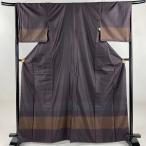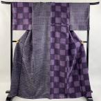 美品 付下げ 身丈166.5cm 裄丈66.5cm M 袷 お召地 片身変わり 格子 縞模様 濃紫 正絹 逸品 中古
