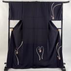 美品 付下げ 身丈162.5cm 裄丈69cm L 袷 菱屋六右ヱ門 お召地 落款あり 花唐草 紗綾形 濃紺 正絹 逸品 中古