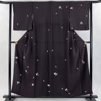 付下げ 身丈155.5cm 裄丈62cm S 袷 洛楽人 落款あり 桜 花びら 縮緬 濃紫 正絹 逸品 中古