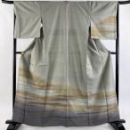 付下げ 身丈173.5cm 裄丈71cm L 袷 藤林徳扇 落款あり 流水 幾何学 銀通し 金銀彩 鶯色 正絹 逸品 中古