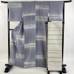 付下げ 身丈167cm 裄丈68.5cm L 袷 牛首紬地 落款あり 証紙あり 縞 斜縞 灰紫 正絹 逸品 中古