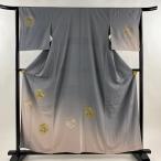 美品 付下げ 身丈163.5cm 裄丈66.5cm M 袷 徳永憲峯 落款あり 雪輪 辻が花 金通し 金彩 灰色 正絹 逸品 一つ紋 中古