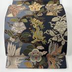 美品 袋帯 逸品 龍 菊 金糸 黒 全通 正絹 中古