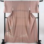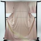 付下げ 身丈161cm 裄丈64.5cm M 袷 紬地 諏訪好風 落款あり 縞 野乃花染 薄ピンク 正絹 逸品 中古