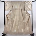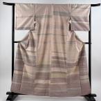 美品 付下げ 身丈167cm 裄丈67.5cm L 袷 袋帯セット 紬地 横縞 よろけ縞 漢方草木染 薄茶色 正絹 名品 中古