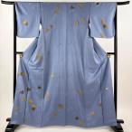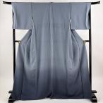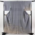 付下げ 身丈169.5cm 裄丈68cm L 袷 お召地 花唐草 ぼかし 青灰色 正絹 逸品 中古