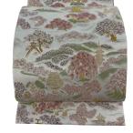美品 袋帯 逸品 宝尽くし 箔 クリーム 全通 正絹 中古