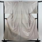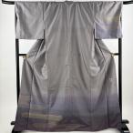 付下げ 身丈167cm 裄丈69.5cm L 袷 紬地 黄皇絲 ヱ霞 縞 花織 灰紫 正絹 逸品 中古