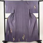 付下げ 身丈159.5cm 裄丈63cm S 袷 和田光正 落款あり 短冊 草花 金銀彩 ぼかし 灰紫 正絹 逸品 中古