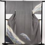 美品 付下げ 身丈163.5cm 裄丈69cm L 袷 落款あり 道長取り 波頭 金糸 黒灰 正絹 逸品 中古