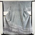 付下げ 身丈157cm 裄丈65cm M 袷 牛首紬地 落款あり 山並み シルエット ぼかし 灰色 正絹 逸品 中古