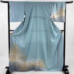 付下げ 身丈164.5cm 裄丈70cm L 袷 風神雷神 金銀彩 水色 正絹 逸品 中古