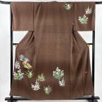 \スーパーSALE限定逸品★30%OFF/ 【中古】 リサイクル着物 身丈159.5cm 裄丈63.5cm 付下げ 正絹 仕立て上がり 刺繍 袷 綸子 M ふくよかLL 茶系 松皮菱文様 特品 [ 着物 中古 帯 リサイクル 振袖 浴衣 袴 和服 古着 ] 【r26】