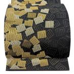 美品 袋帯 逸品 落款あり 渡辺雪三郎 源氏香 金糸 箔 黒 六通 正絹 中古
