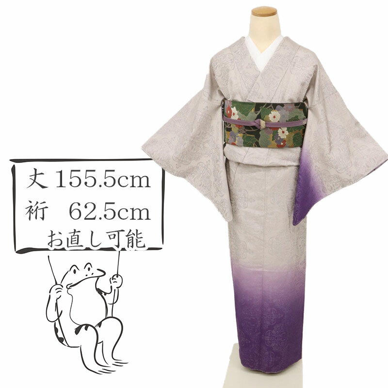 付下げ 身丈155.5cm 裄丈64cm M 袷 花唐草 ぼかし 灰紫 正絹 逸品 中古