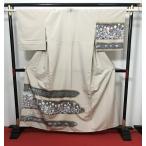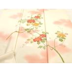 中古 Sサイズ 単衣着物 化繊 付け下げ 付下げ訪問着 薄ベージュ地に霞模様 洗える着物 シーズン秋