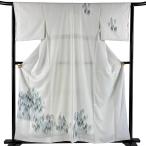 付下げ 身丈160cm 裄丈64cm M 袷 洗える着物 さんび 樹木 地紋 ぼかし 灰白 化繊 優品 中古