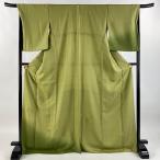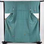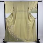 付下げ 身丈158cm 裄丈65cm M 単衣 草花 ヱ霞 刺繍 金糸 緑 正絹 秀品 中古