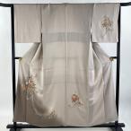 付下げ 身丈160.5cm 裄丈66cm M 単衣 御所車 松竹梅 刺繍 ベージュ 正絹 秀品 中古