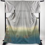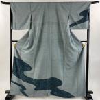 付下げ 身丈156cm 裄丈65cm M 袷 幾何学 総絞り ぼかし 青灰色 正絹 美品 秀品 中古