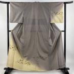 美品 付下げ 身丈163cm 裄丈69cm L 袷 枝花 染め分け ぼかし 灰茶 正絹 秀品 中古