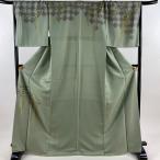 付下げ 身丈161.5cm 裄丈67cm M 袷 鏡裏文 花唐草 金糸 刺繍 薄緑 正絹 秀品 中古