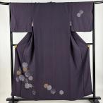 付下げ 身丈156cm 裄丈65.5cm M 袷 桜 雪輪 絞り 刺繍 濃紫 正絹 美品 秀品 中古