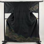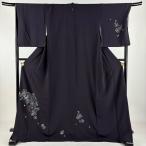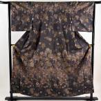 付下げ 身丈167cm 裄丈70cm L 袷 背抜き 草花 華文 金銀彩 ぼかし 墨色 正絹 秀品 中古