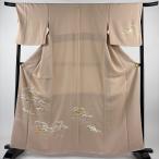 付下げ 身丈163cm 裄丈68.5cm L 袷 冊子 松 金彩 ピンクベージュ 正絹 秀品 一つ紋 中古