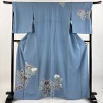 付下げ 身丈166cm 裄丈67.5cm L 袷 落款あり 牡丹 絞り 青灰色 正絹 秀品 中古